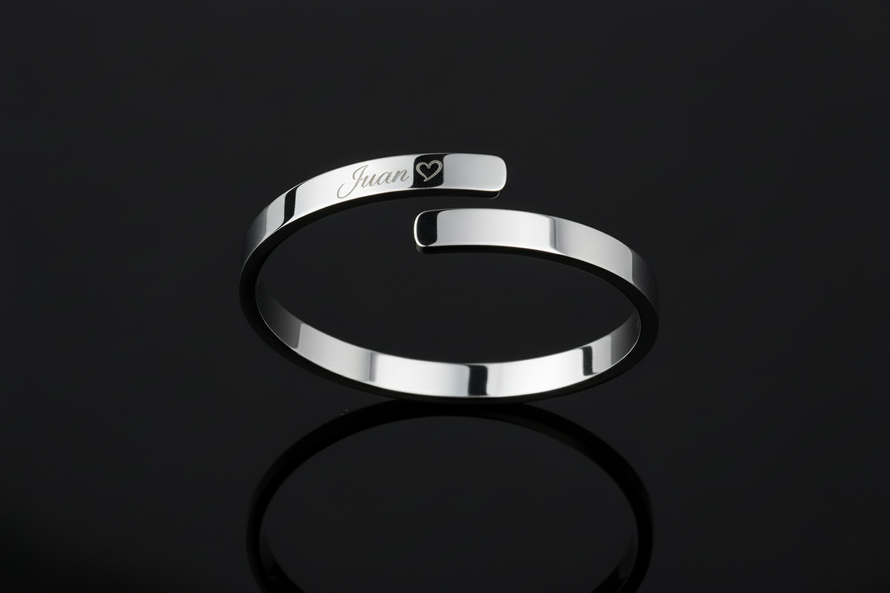 Ein schlanker, verstellbarer Edelstahlring mit feiner Oberfläche – perfekt für den Alltag oder als zeitloses Geschenk. Präzise Gravur in 3D‑Optik macht jeden Ring zum einzigartigen Schmuckstück für besondere Momente.