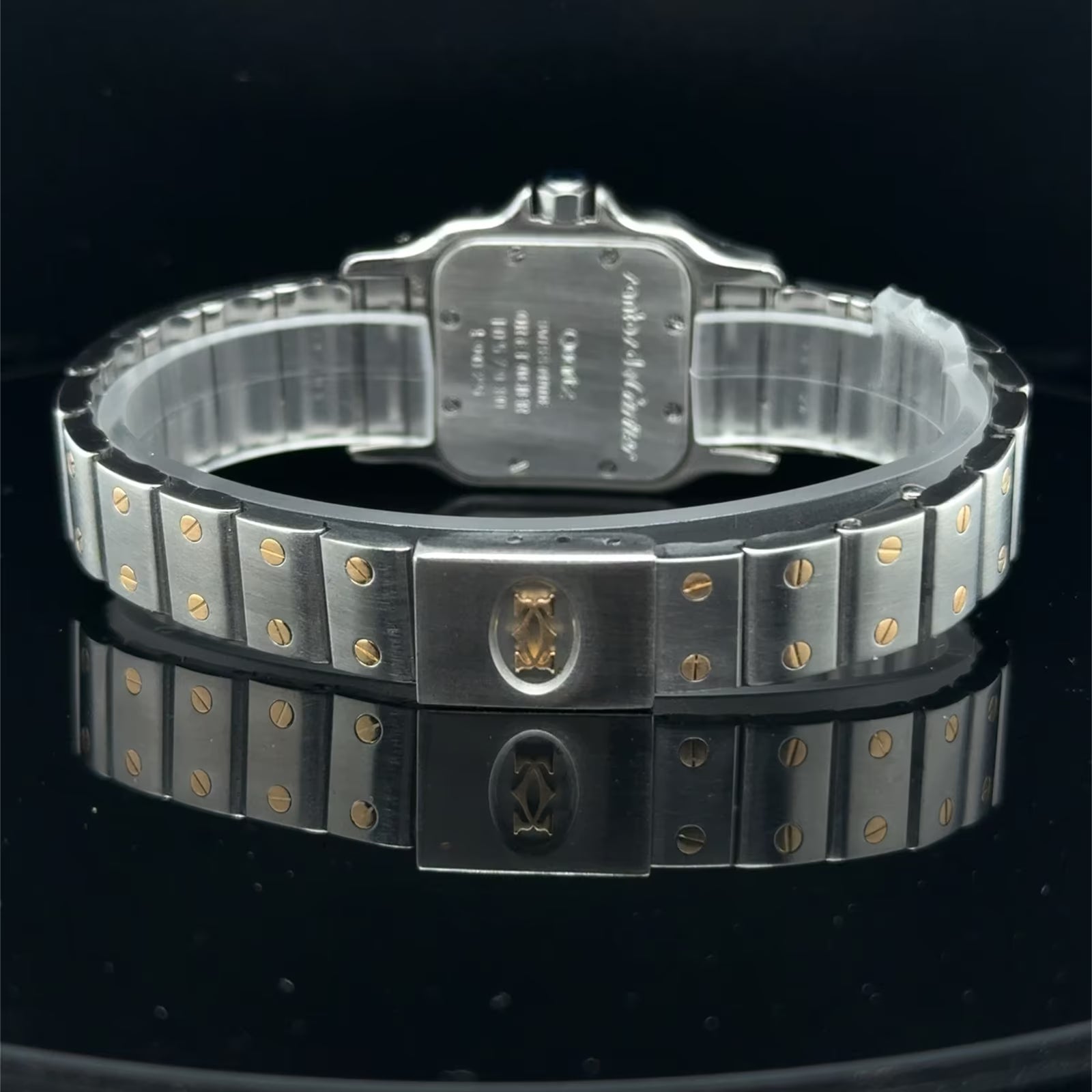 Die Cartier Santos in Edelstahl und Gold vereint ikonisches Design mit zeitloser Eleganz. Mit 24 mm Gehäusedurchmesser, präzisem Quarzwerk und komfortablem 14 cm-Armband (Gesamtlänge 19 cm) ist sie die perfekte Begleiterin für stilbewusste Trägerinnen.